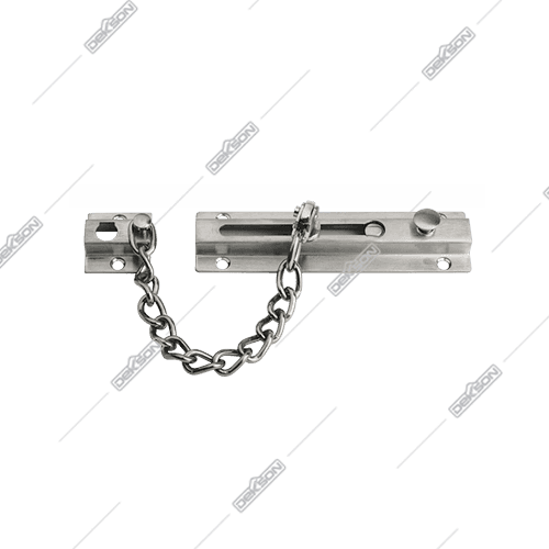 Simple locking device with chain for wood door.